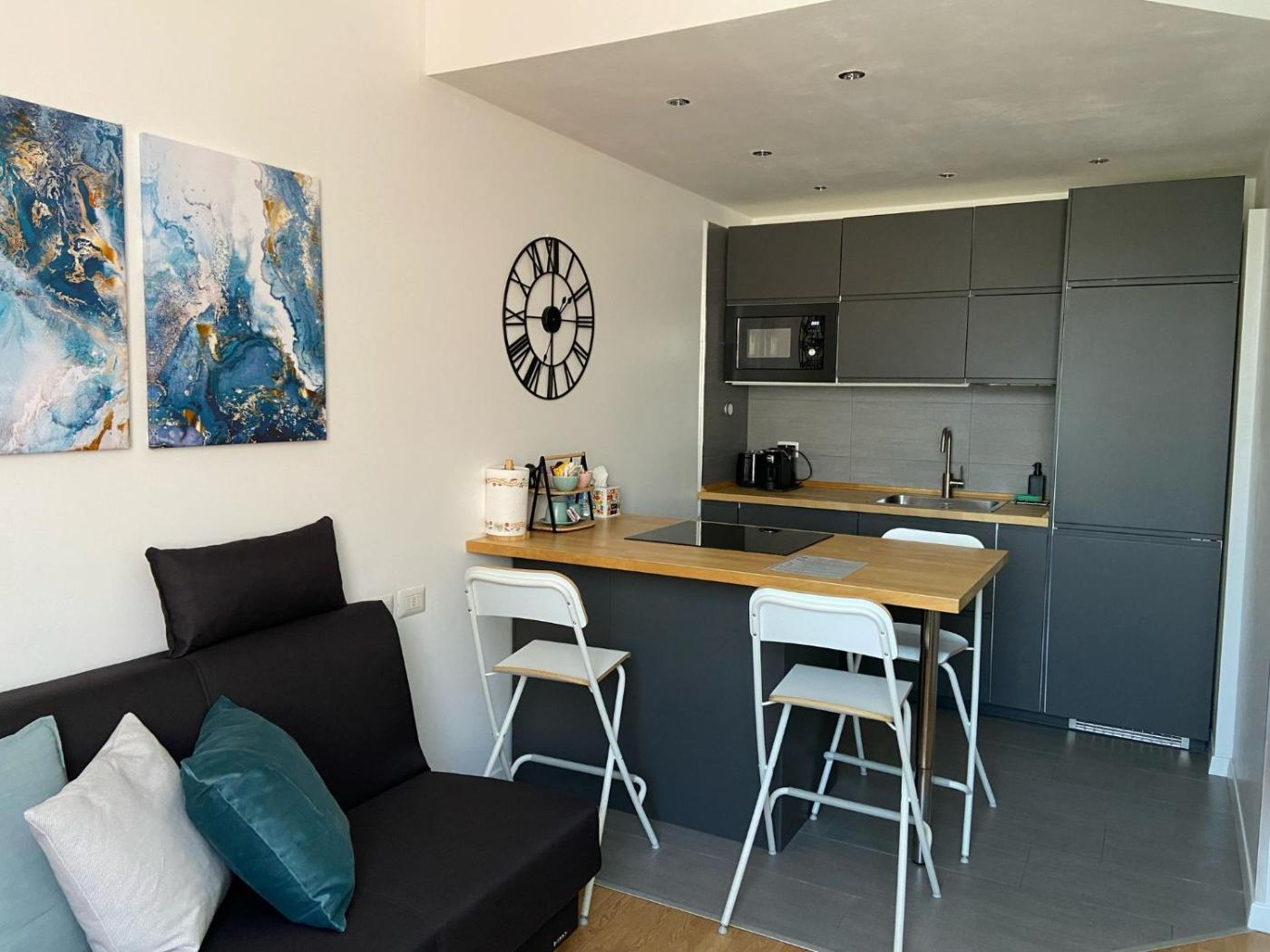 Studio with Lake View. The studio features a dining area, a wardrobe, as well as a private bathroom featuring a shower and a bidet. Meals can be prepared in the kitchen, which is equipped with a stovetop, a refrigerator, a dishwasher and a microwave. The air-conditioned studio provides a flat-screen TV, a private entrance, a tea and coffee maker, a seating area as well as lake views. The unit offers 2 beds.