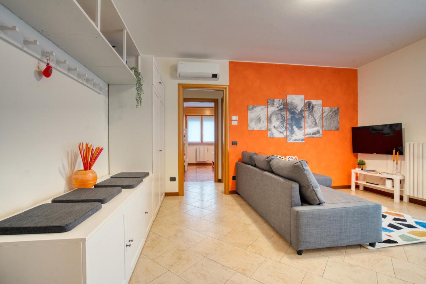 Situated in Cernusco sul Naviglio, 13 km from Lambrate Metro Station and 17 km from Centrale Metro Station, GuestHost - Casa Oranis, bilocale nuovo con balcone perfetto per famiglie offers a terrace and air conditioning. It is17 km from GAM Milano and features a lift. Free WiFi is available throughout the property and Villa Fiorita is 1.8 km away.