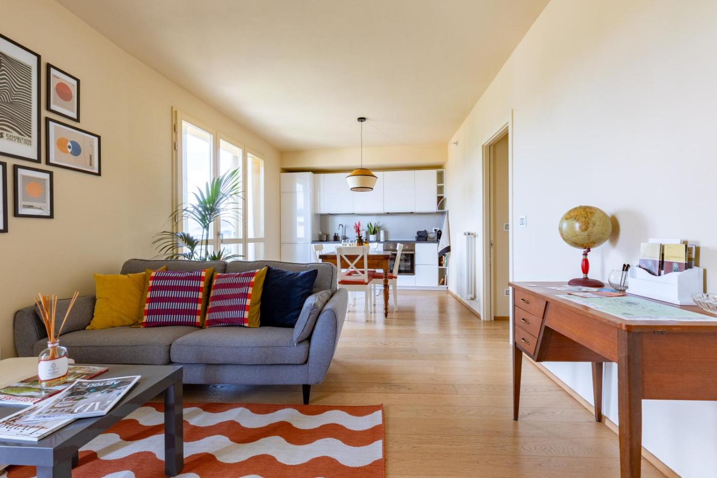 Apartment. This spacious apartment comes with 1 living room, 2 separate bedrooms and 2 bathrooms with a bath and a shower. Guests can make meals in the kitchen that features a stovetop, a refrigerator, a dishwasher and kitchenware. The air-conditioned apartment features a flat-screen TV, a washing machine, a tea and coffee maker, a seating area as well as garden views. The unit has 3 beds.