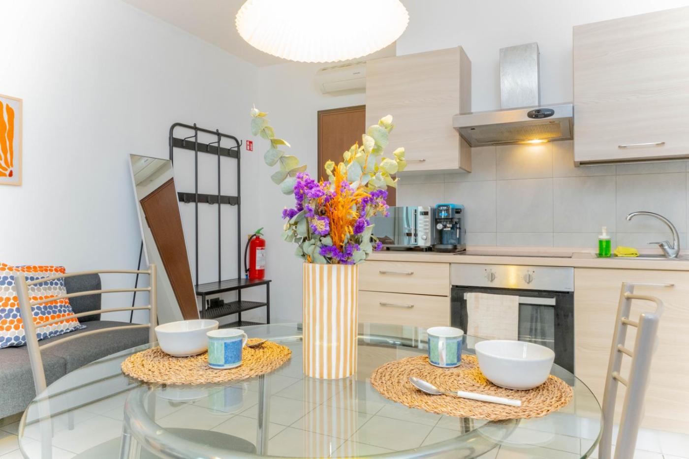 One-Bedroom Apartment. The air-conditioned apartment has 1 bedroom and 1 bathroom with a shower and a bidet. In the well-fitted kitchen, guests will find a stovetop, a refrigerator, an oven and a microwave. Boasting a balcony with garden views, this apartment also features a washing machine and a flat-screen TV. The unit has 1 bed.