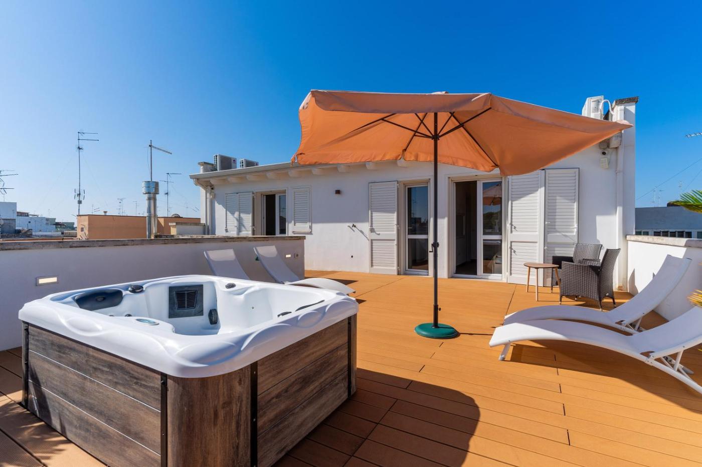Featuring air-conditioned accommodation with a patio, Attico di Leo by BarbarHouse is located in Lecce. Boasting a terrace, the apartment is close to several noted attractions, around 1.7 km from Piazza Mazzini, 1.6 km from Sant Oronzo Square and 1.4 km from Lecce Train Station. Providing free WiFi throughout the property, the non-smoking apartment has a hot tub.