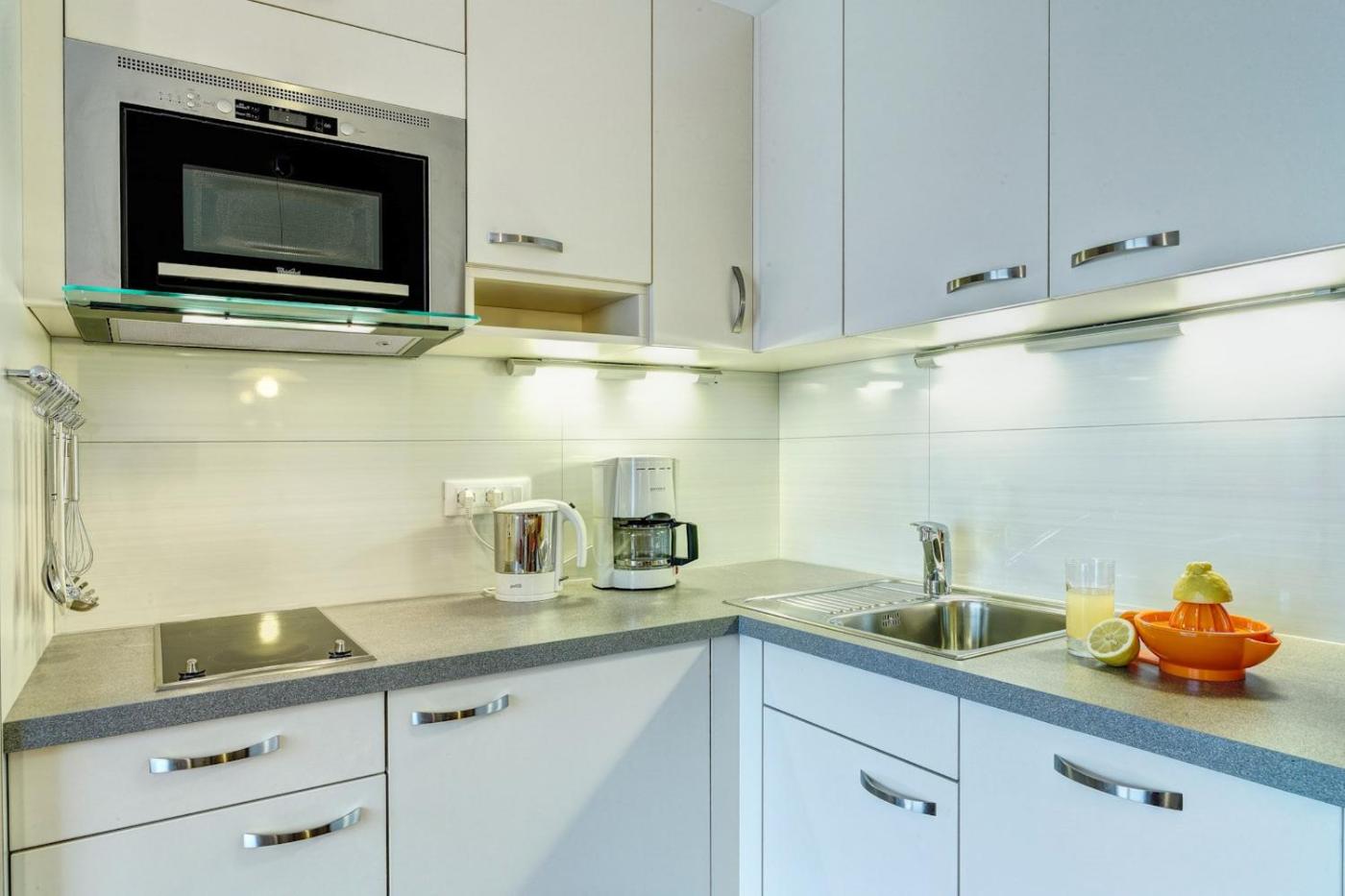 Studio Apartment. This studio features a south-facing balcony and kitchenette with a toaster, kettle and coffee machine. ;