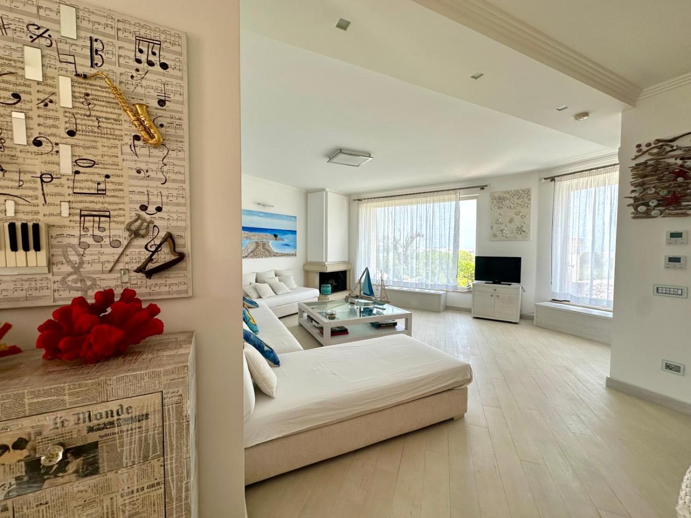 Deluxe Apartment. The pool with a view and fireplace are the standout features of this apartment. Boasting a private entrance, this air-conditioned apartment features 1 living room, 1 separate bedroom and 1 bathroom with a shower and a bidet. Meals can be prepared in the kitchen, which features a stovetop, a refrigerator and kitchenware. The spacious apartment features a flat-screen TV with satellite channels, a tea and coffee maker, a seating area, a dining area as well as sea views. The unit has 3 beds.
